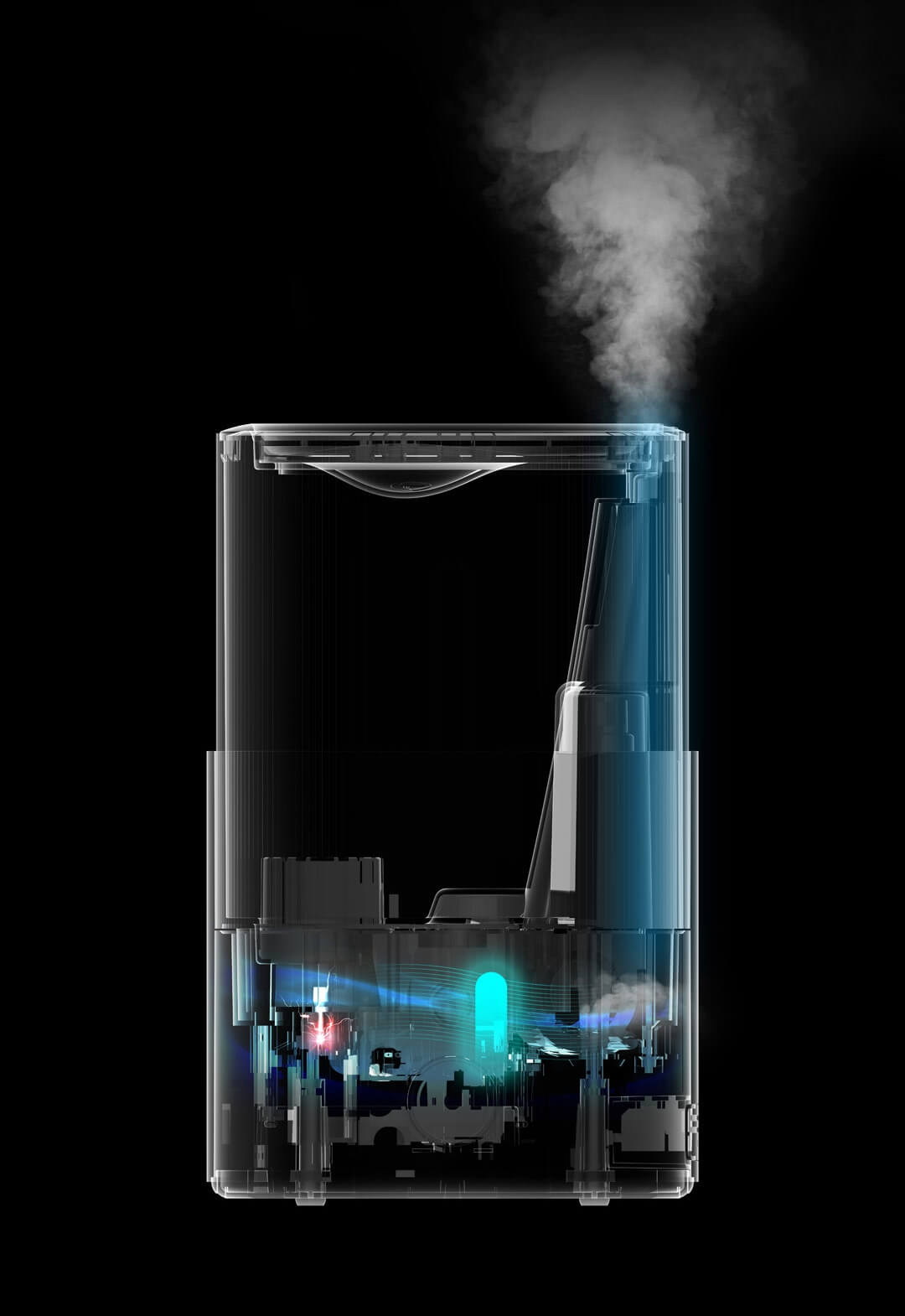 Mặc dù có thiết kế không nắp đậy nhưng điều đó không đồng nghĩa với việc nguồn nước tạo sương trên máy sẽ dễ dàng bị nhiễm khuẩn. Vì cơ chế bắn tia UV-C sẽ làm nhiệm vụ diệt khuẩn gần như tuyệt đối cho nguồn nước sử dụng trên thiết bị này.