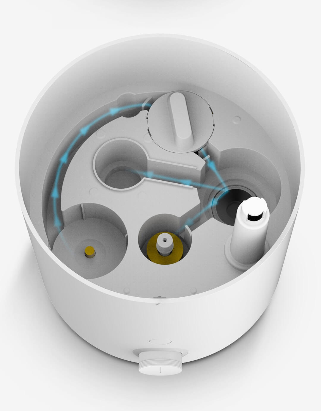 Trong cấu tạo của máy tạo độ ẩm Deerma DEM-SJS600 còn có một bộ quạt ngầm. Khi các phân tử nước có kích thước nano cực nhỏ được phân giải ra, quạt sẽ tạo thành một cơn “bão” để đẩy các phân tử nước này theo thanh dẫn ra ngoài theo chiều thẳng đứng.